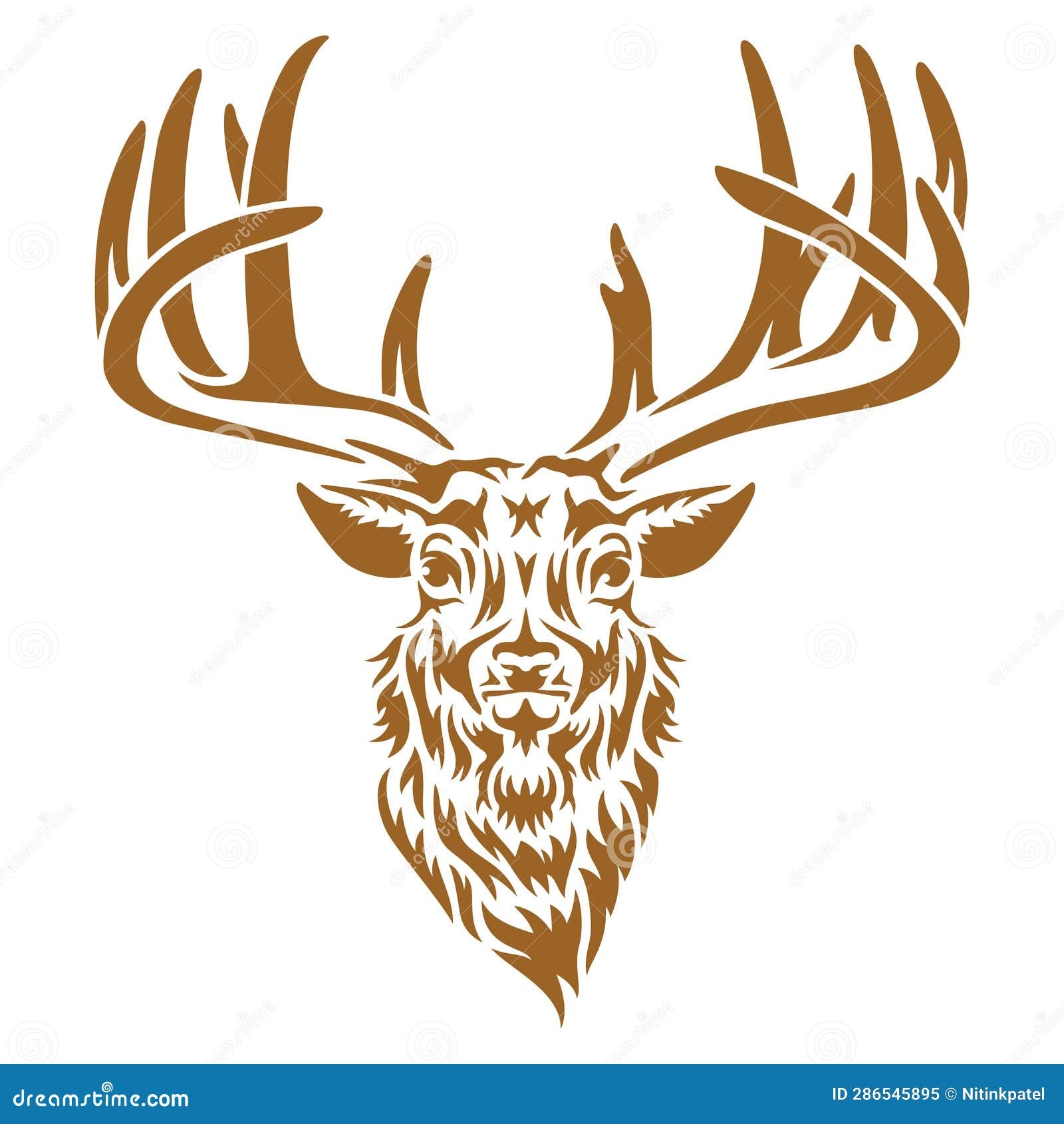 American Elk Front Face Printable Vector Stencil Stock Vector Illustration Of Hunting Printable 286545895
