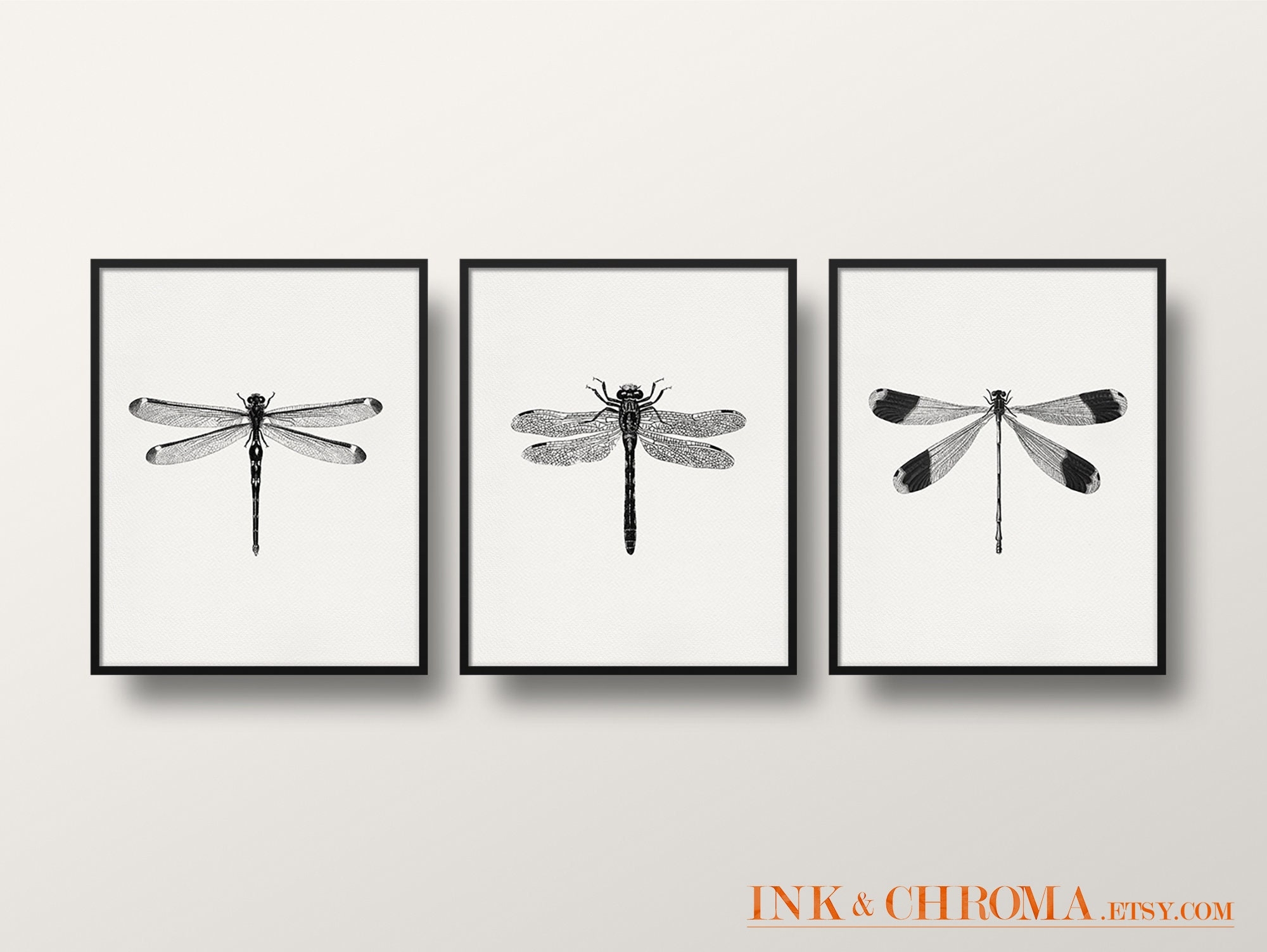 Dragonfly Damselfly Print Set Set Of 3 Wall Art Insect Print Wildlife Art 3 Dragonflies Bug Wall Art 8×8 8×10 Print 5×7 Print Etsy