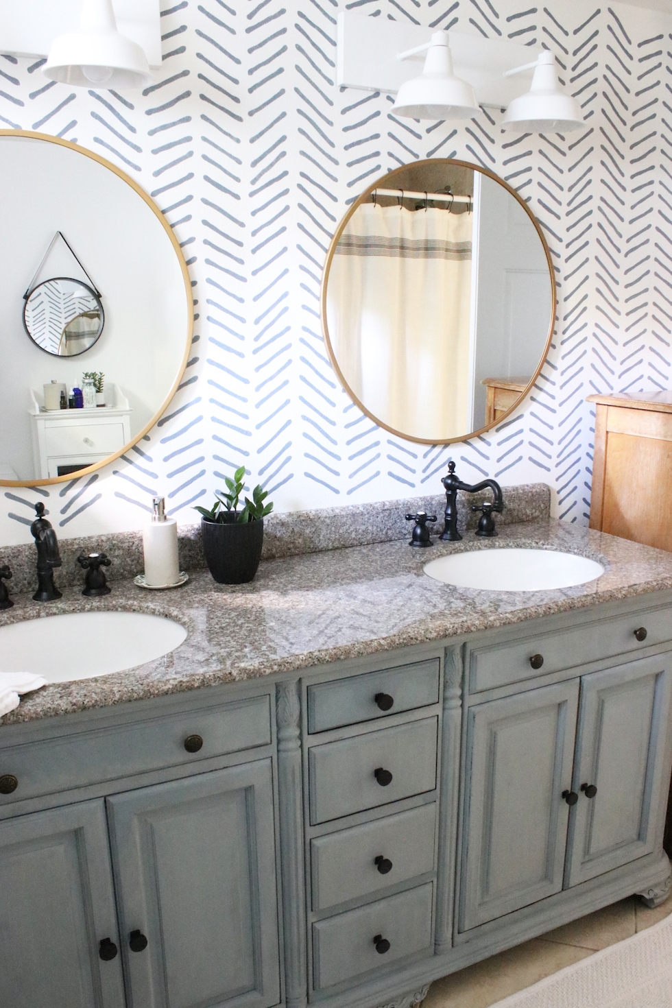 Our Bathroom Makeover Painted Vanity And Wall Stencil Details The Inspired Room