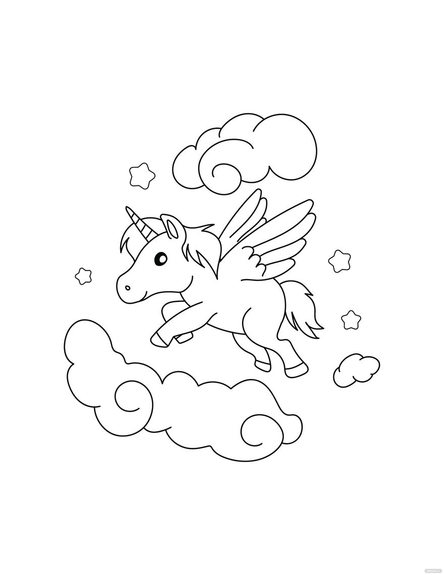 Flying Unicorn Coloring Page In Illustrator PDF SVG JPG EPS PNG Download Template