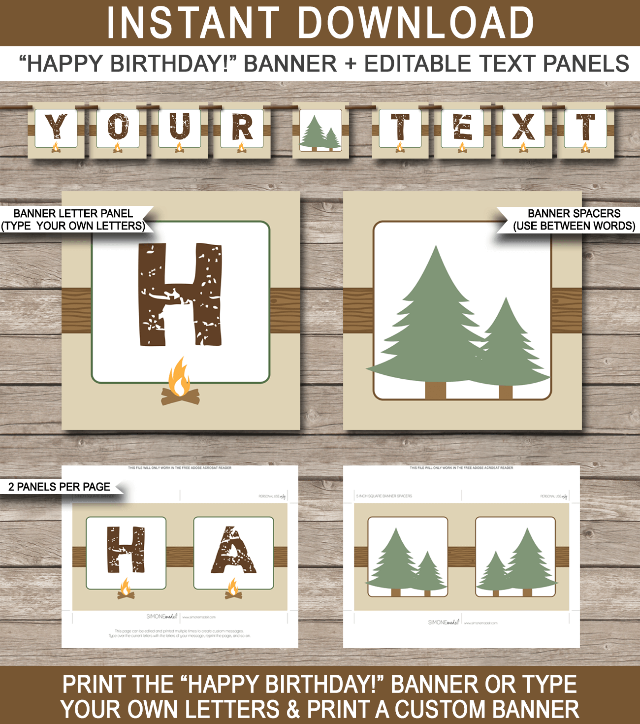 Camping Party Banner Template Birthday Banner Editable Bunting