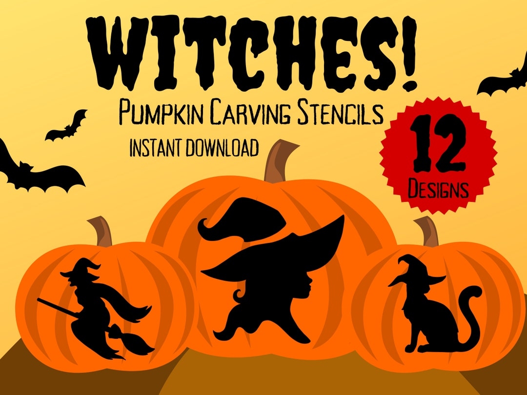Witch Pumpkin Carving Stencils 12 Unique Halloween Jack O lantern Carving Patterns Etsy