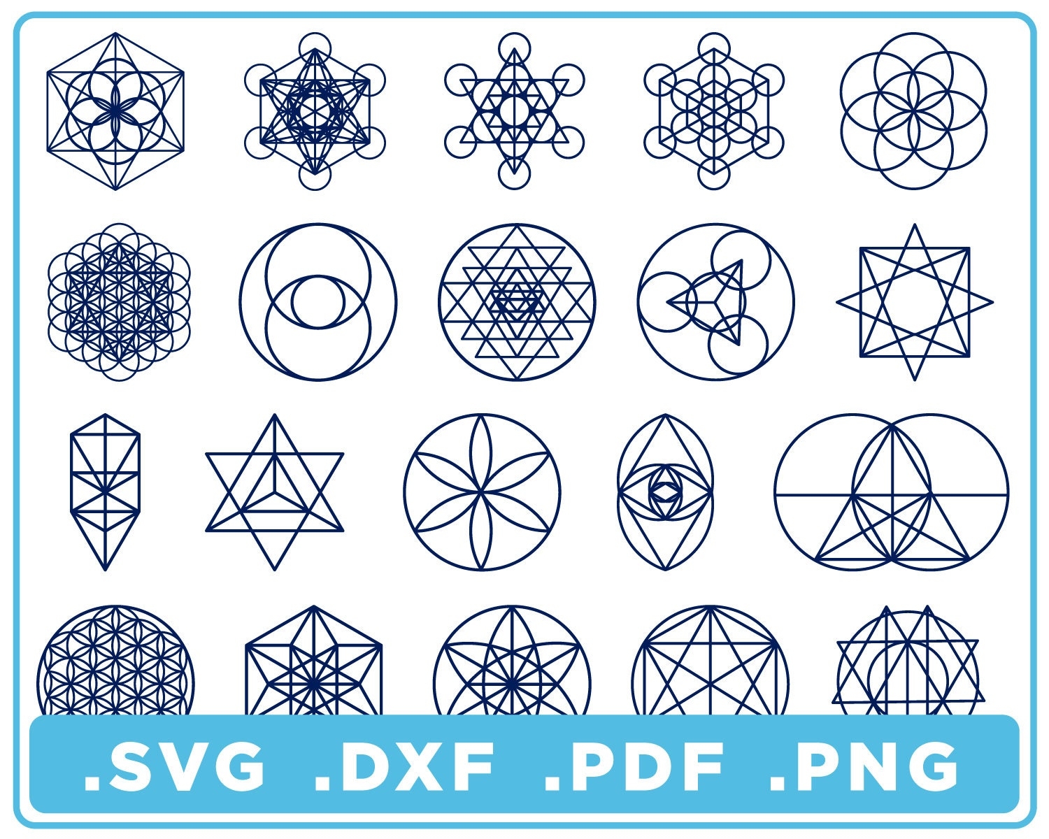 Sacred Geometry Set Of 20 Individual Designs Svg dxf png pdf Cut Files Digital Download Cricut Silhouette Glowforge Instant Download Etsy