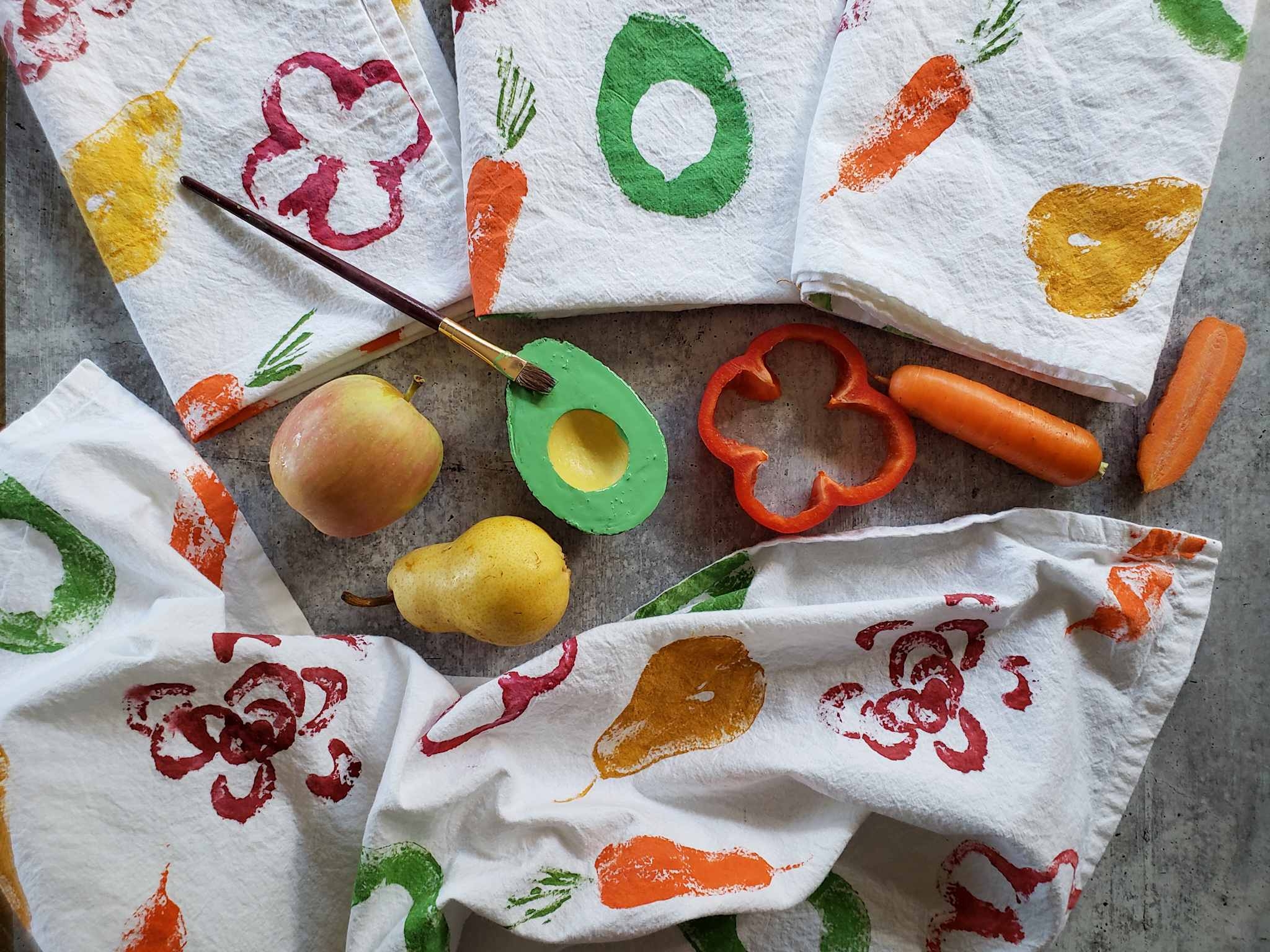How To Make DIY Fruit Veggie Stamped Tea Towels Homestead And Chill