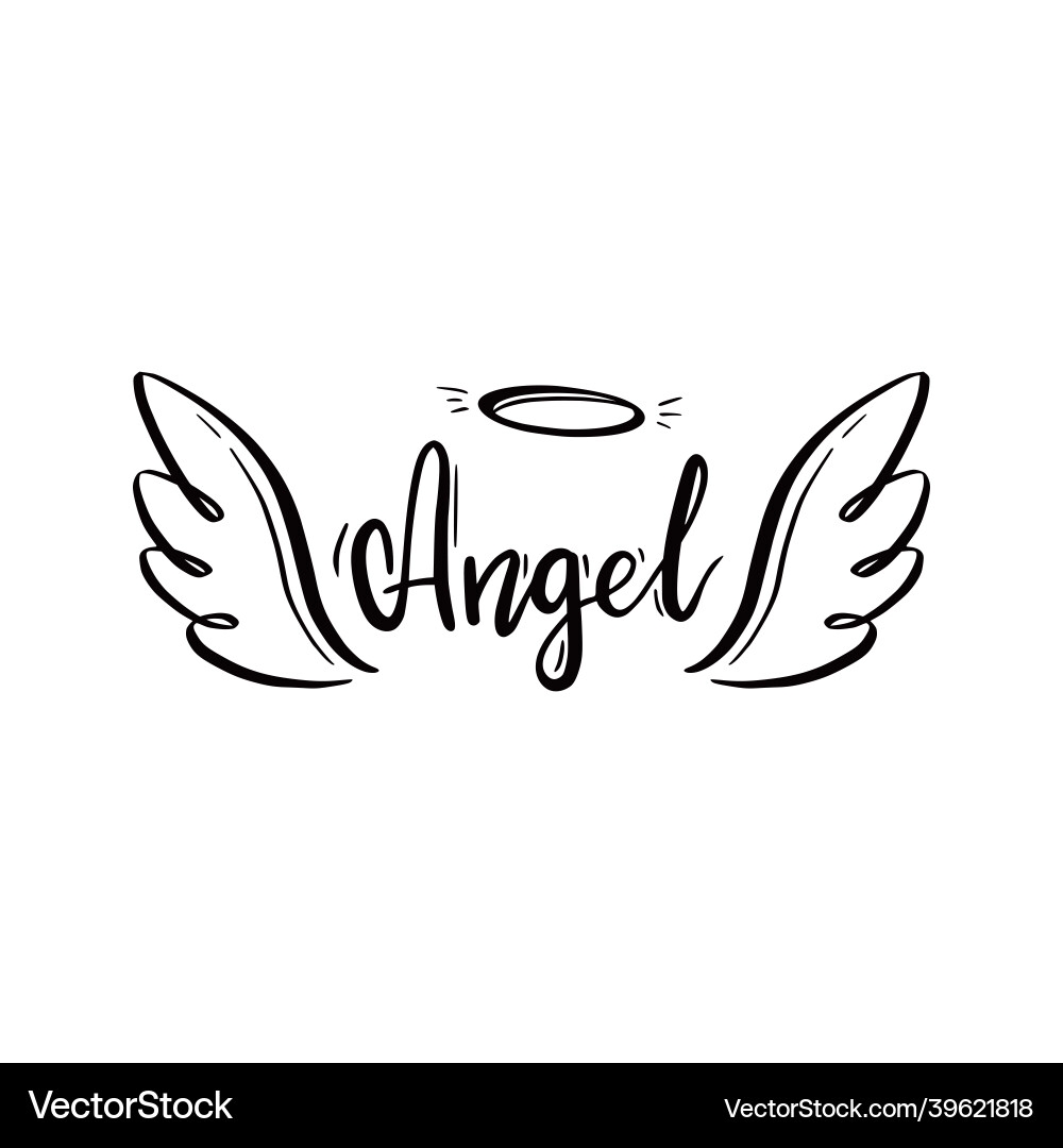 Angel Wing With Halo And Lettering Text Royalty Free Vector