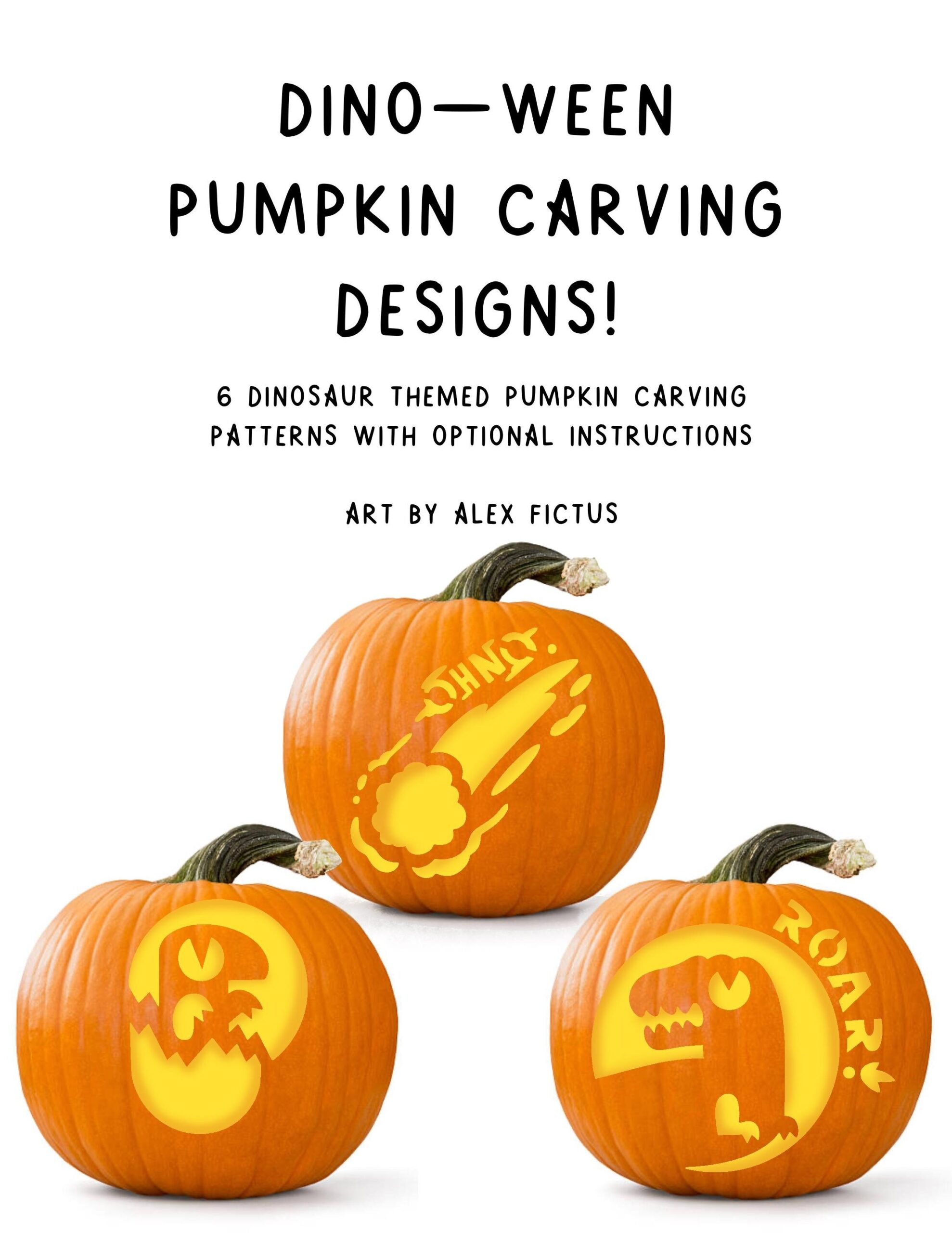 Dino ween Pumpkin Carving Design PDF 6 Paleontology Spooky Cute Halloween Carving Patterns Digital Download Etsy