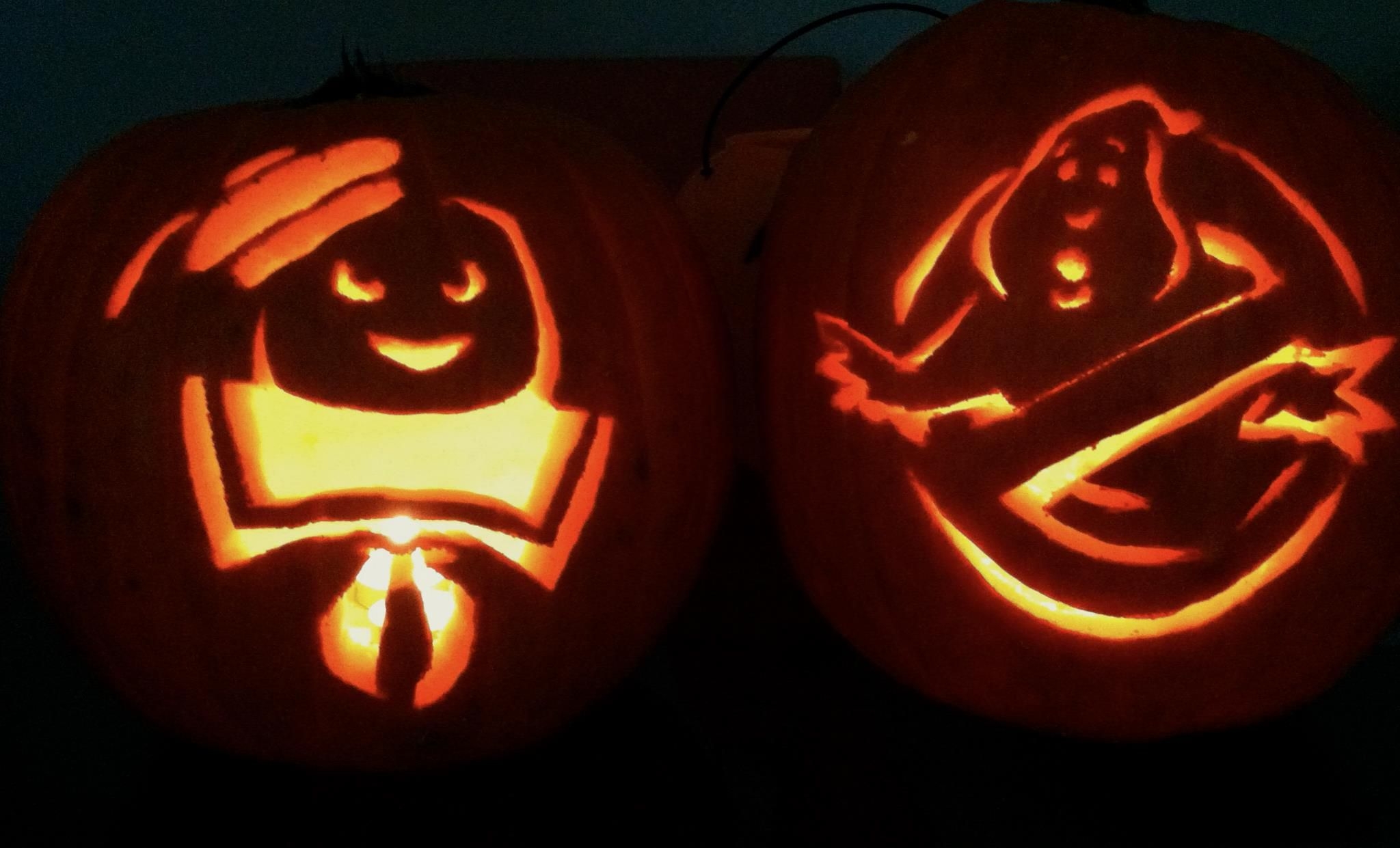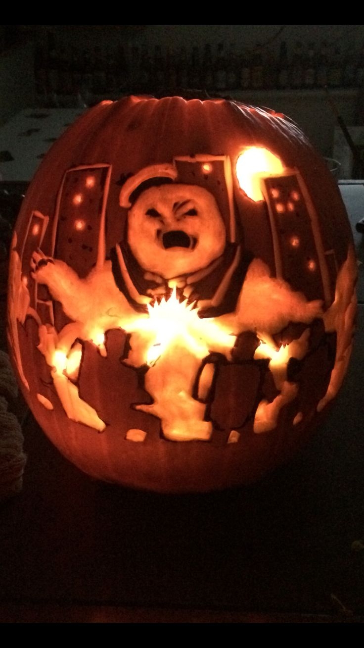 Pumpkin Carving Ghostbusters Fighting The Stay puft Marshmallow Man