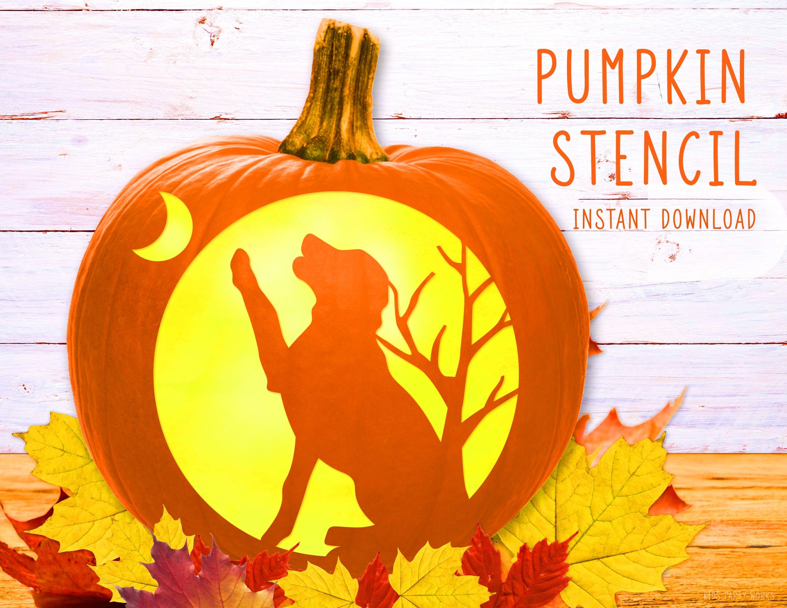 Dog Pumpkin Stencil Labrador Retriever Printable Jack O Lantern Pumpkin Carving Template Halloween Dog And Moon Instant Download Etsy