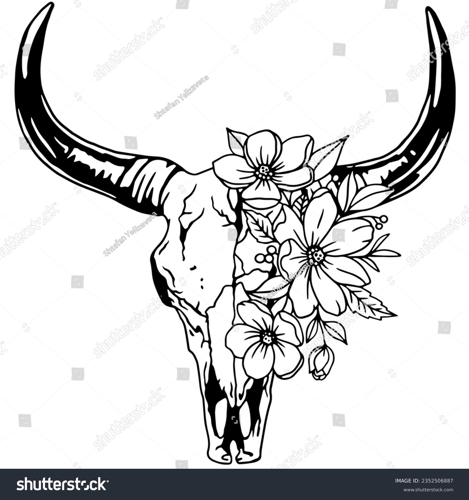 Texas Longhorn Cow Skull Svg Hand Drawn Desert Cow Skull