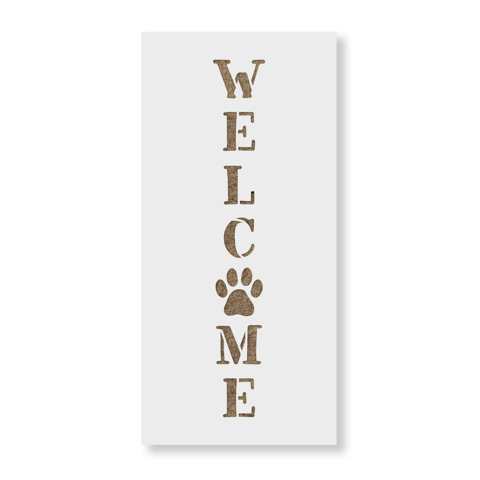 Welcome Paw Print Vertical Sign Stencils Stencil Revolution