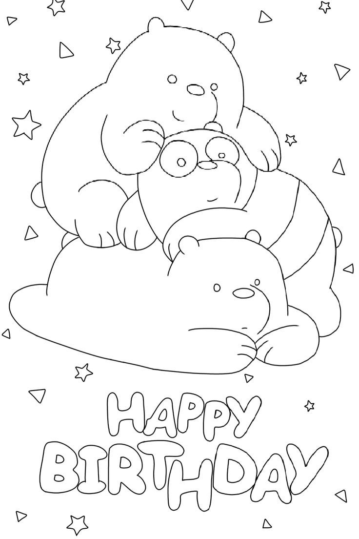 We Bare Bears Happy Birthday Coloring Pages For Kids